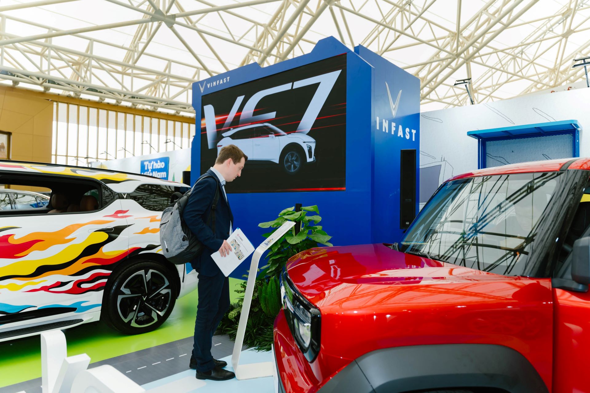Không chỉ đánh dấu sự trở lại mạnh mẽ của ngành triển lãm Việt Nam, sự kiện còn mang ý nghĩa thúc đẩy kết nối, phát triển công nghiệp - công nghệ của Việt Nam. Giữa bức tranh hội tụ của nền công nghiệp toàn cầu, VinFast - thương hiệu ô tô điện Việt Nam - trở thành điểm nhấn đáng chú ý tại Sảnh H2, nơi khách tham quan từ nhiều quốc gia và lĩnh vực dừng chân để chiêm ngưỡng dải sản phẩm và tìm hiểu về công nghệ xe điện Việt.