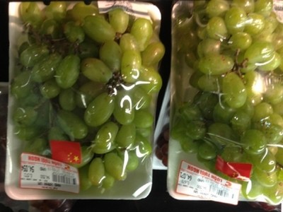 Nho bán tại siêu thị Big C the Garden (Mỹ Đình, Hà Nội) bên ngoài nhãn in made in Vietnam, nhưng bên trong lại dán cờ Trung Quốc.
