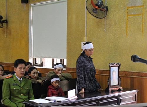 Chị Lê Thị Bình vợ bị hại Nguyễn Văn Tình tại phiên tòa
