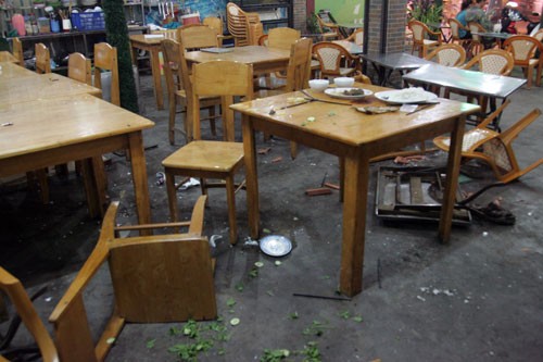 Theo nhiều nhân chứng, khoảng 18 giờ ngày 8.10, khi hàng chục khách đang ngồi ăn tại quán Tùng Ký (đường Dương Bá Trạc, P.1, Q.8) thì có một nhóm 11 người (7 nam, 4 nữ) tay lăm lăm mã tấu xông vào quán.