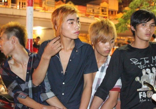 4 thanh niên nhuộm tóc vàng sau khi dùng hung khí đi chém người đã bị lực lượng 141 phát hiện và tóm gọn.