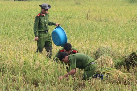 Sắc áo CAND trên những cánh đồng ở huyện Vĩnh Linh, Quảng Trị.