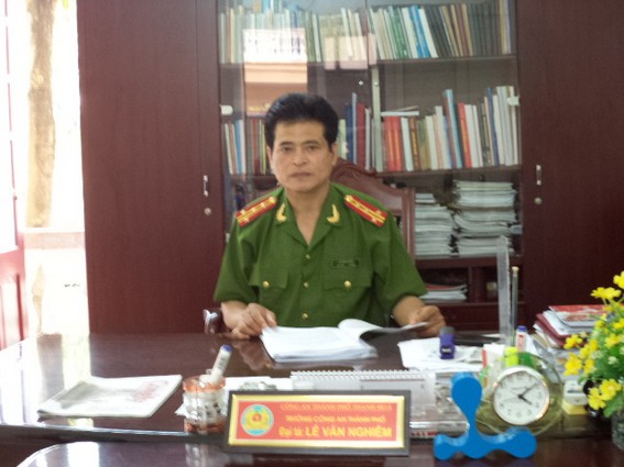 Đại tá Lê Văn Nghiêm Trưởng CA thành phố Thanh Hóa trao đổi với PV. Ảnh: N. Hưng