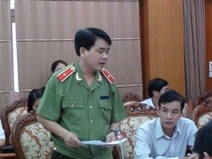 Giám đốc công an Thành phố Hà Nội Nguyễn Đức Chung công bố kết luận điều tra ban đầu tại cuộc họp. (Ảnh: Thùy Giang/Vietnam+)