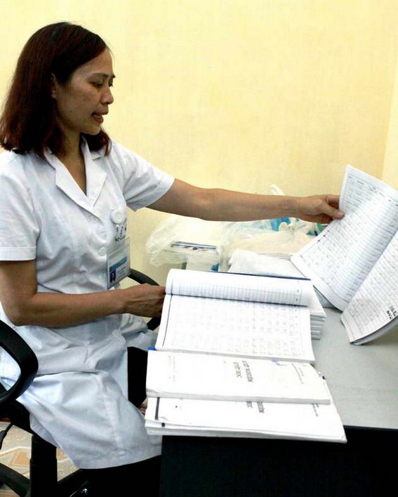 Bà Hoàng Thị Nguyệt - Kỹ thuật viên Khoa xét nghiệm Bệnh viện đa khoa huyện Hoài Đức - người đã viết đơn tố cáo những sai phạm. (Ảnh: Dương Ngọc/TTXVN)