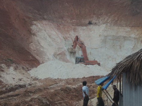Trước mặt PV là một khoảng đồi lớn đã được đào bới, lộ ra một vùng đất trắng toát bêntrong là cao lanh. Hai máy đào cỡ lớn được huy động, hoạt động hết công suất móc để đào móc cao lanh. Những chiếc lán trại cũng được dựng lên để “công nhân” khai thác ăn ở, bên ngoài quốc lộ có gắn biển “công trường đang thi công” hẳn hoi.