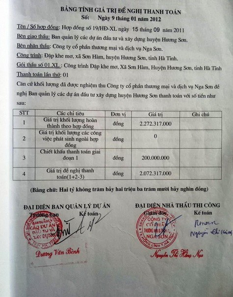 Nhờ có biên bản nghiệm thu trên mà nhà thầu đã được thanh toán là 2,27 tỷ đồng gói thầu số 1 và 4,37 tỷ gói số 02 là đồng.