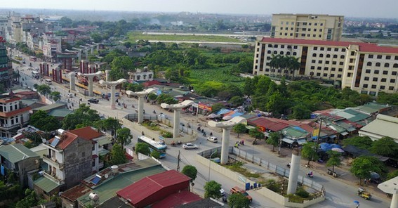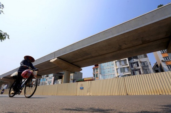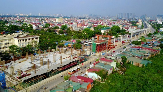 Tuyến metro đầu tiên ở Hà Nội nhìn từ trên cao.