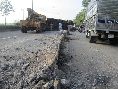 Dải phân cách bị xe container cày nát