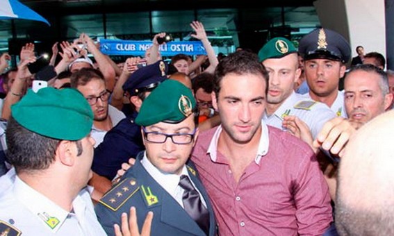 Higuain trong vòng vây của người hâm mộ.