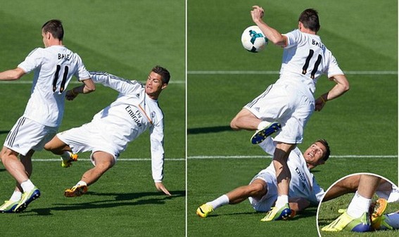 Chân sút người Bồ Đào Nha Cristiano Ronaldo đã có tình huống vào bóng trên mức cần thiết với Gareth Bale ở buổi tập cho trận đấu với Villarreal tại Liga vào cuối tuần này của Real Madrid.