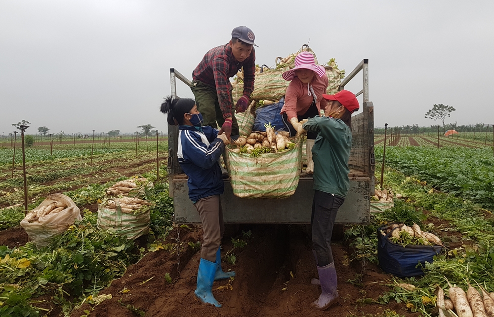 Củ cải ở Tráng Việt rớt giá khiến người dân lao đao. Ảnh: Di Linh