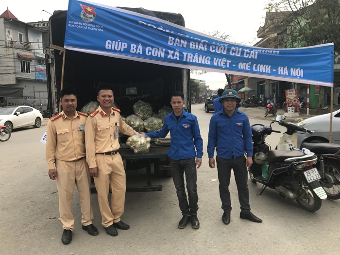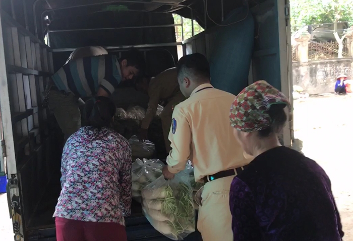 Đội CSGT số 11 cũng cắt cử cán bộ chiến sĩ thay nhau kết hợp với Đoàn viên 2 xã Tiến Xuân và Thạch Hoà để bán giúp củ cải cho bà con nông dân.