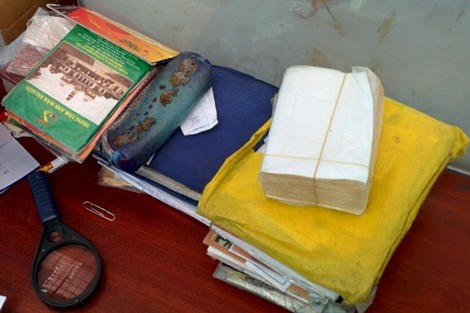 “Đồ nghề” của ông chỉ bao gồm vài quyển từ điển, mấy xấp tài liệu và một chiếc kính lúp
