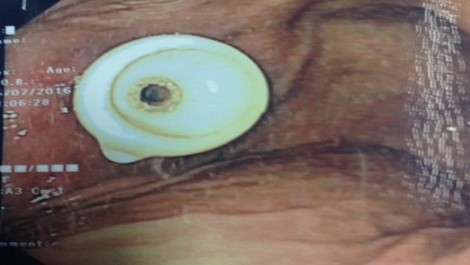 Đó là trường hợp của bé Trần Thị Ngọc Anh (6 tuổi - Xóm Ấp Thái, xã Hóa Thượng, huyện Đồng Hỷ, tỉnh Thái Nguyên) bị thủng thực quản do nuốt đồ chơi cách đây từ 2 năm trước.