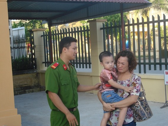 Chị Hương vui mừng chạy đến đón con từ chiến sỹ công an huyện Gia Lộc