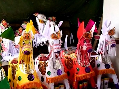 Những hình nhân, voi ngựa và vàng mã của các con nhang, đệ tử mua sắm để “hầu thánh” sẽ được “hóa” thành…tro bụi sau mỗi buổi hầu đồng có trị giá lên tới cả chục, thậm chí vài chục triệu đồng