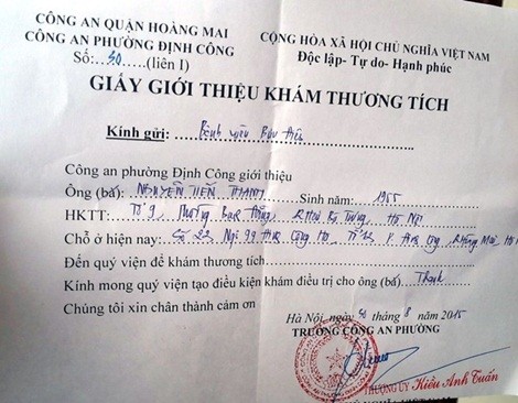Giấy giới thiệu ông Thanh đi khám thương tại bệnh viện Bưu điện