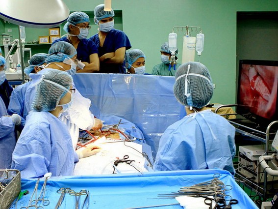 Lập tức, các bác sỹ khoa Ngoại tổng hợp của bệnh viện tiến hành cấp cứu khẩn để cứu sống bệnh nhân. Chẩn đoán ban đầu, bệnh nhân bị sốc mất máu do vỡ phình động mạch chủ bụng. Êkíp phẫu thuật tiến hành truyền dịch, bơm máu và phẫu thuật khẩn cấp cho bệnh nhân.