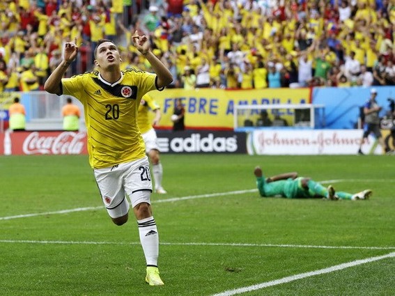 Juan Quintero của Colombia ăn mừng bàn thắng vào lưới Cote d'Ivoire. (Nguồn: AP)