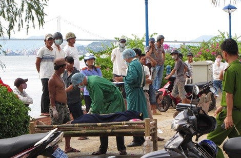 Đang câu cá, bất ngờ một số người phát hiện một xác chết nổi bồng bềnh trên sông Hàn (Đà Nẵng) trôi dạt vào bờ.