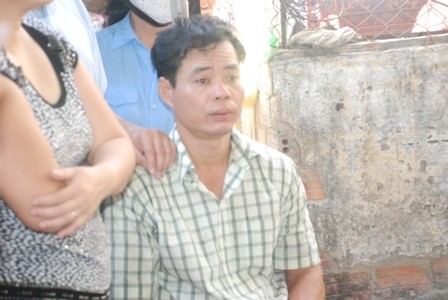 Anh Phạm Công Hải (chồng cô giáo Mai) ôm con khóc nức nở. Ảnh Đ.H