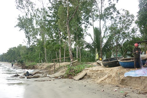 Cả hàng thông dài khu vực nhà dân chắn sóng bị biển xâm thực quật ngã gần hết