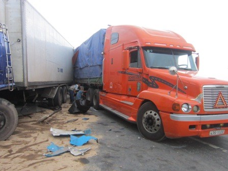 Cùng lúc đó, xe ô tô BKS 77C- 033.46 đang chạy chiều ngược lại cũng bị chiếc xe ô tô đầu kéo BKS 43S- 1020 “húc” vào phía đầu xe, gây ách tắc giao thông khoảng 15 phút. Hậu quả, xe ô tô đông lạnh 72L-0595 và xe 77C-033.46 bị hư hỏng phần đầu.