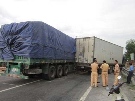 Vào thời điểm trên, xe ô tô đông lạnh mang BKS 72L- 0595 đang lưu thông hướng Nam-Bắc, bất ngờ bị xe đầu kéo BKS 43S- 1020 chạy cùng chiều phía sau đâm vào phía đuôi. Do cú đâm mạnh nên xe đông lạnh 72L-0595 bị tông vào tường hộ lan mềm (bên phải cùng chiều theo hướng lưu thông Nam- Bắc), bánh trước rơi xuống rãnh thoát nước bên đường.