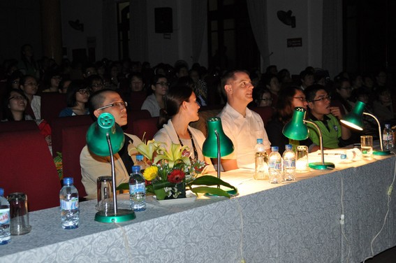 Hai chàng trai Đỗ Hữu Tuấn và Nguyễn Ngọc Hải đến từ ĐH Ngoại thương đã xuất sắc giành chiến thắng trong đêm chung kết cuộc thi Hùng biện phản biện tiếng Anh Eng - Fynity 2011.