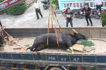 Sau những cuộc di chuyển gây kinh hoàng cho người dân nhiều địa phương, đến ngày 24.7, bò tót đã bị lực lượng chức năng TT- Huế khống chế.