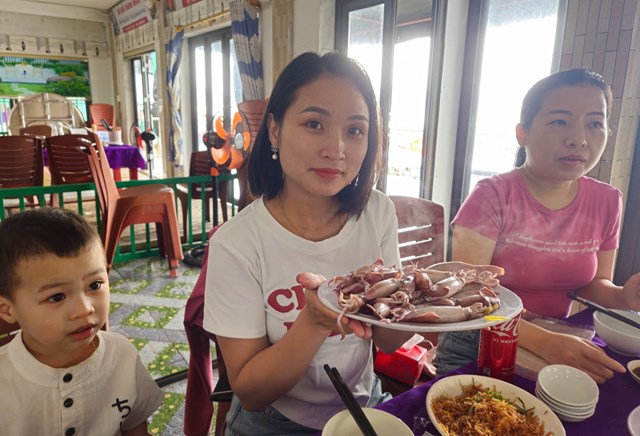 Chị Nguyễn Thanh Huyền, một du khách đến từ TP. Vinh chia sẻ: “Đây là lần đầu tiên gia đình tôi đến đây thưởng thức mực nhảy. Được tự tay vớt những con mực đang còn sống, bật tanh tách rồi ăn tại chỗ là trải nghiệm cực kỳ thú vị. Dù quãng đường di chuyển hơn 150 km mất gần 3 tiếng, nhưng chắc chắn lần sau chúng tôi sẽ quay lại và rủ thêm bạn bè”.