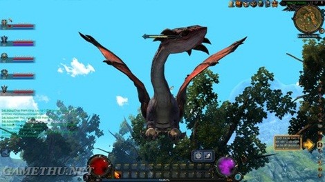Nhân vật đang cưỡi rồng đậu trên ngọn cây cổ thụ.