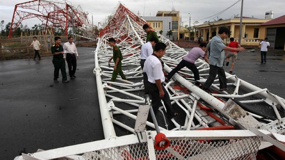 Cột tháp truyền hình Nam Định cao 180m trở thành đống sắt rúm ró sau cơn gió