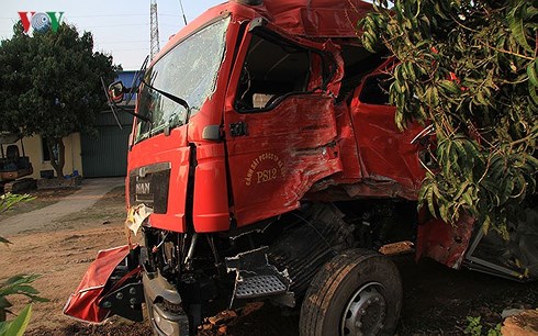 Chiếc xe cứu hỏa sau vụ tai nạn.