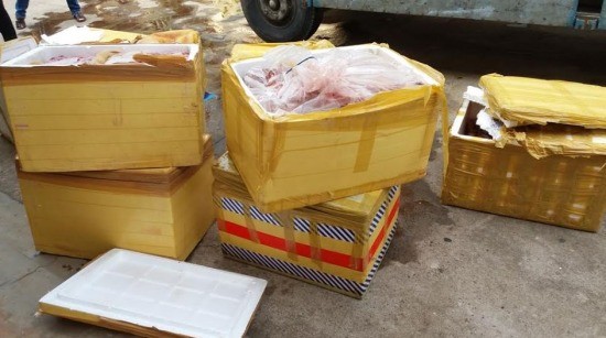 Theo cơ quan chức năng tổng trọng lượng của 9 thùng xốp trên là 705kg, trong đó 591kg là thịt heo rừng và 114kg thịt đà điểu.