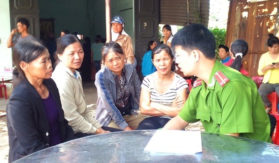 Công an lấy lời khai của gia đình sản phụ. Ảnh: M.Chiến