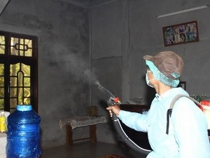 Phun thuốc diệt muỗi tại các hộ gia đình. Ảnh minh họa: Hồ Cầu/TTXVN