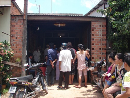 Người dân hiếu kỳ tụ tập tại nhà- nơi xảy ra án mạng
