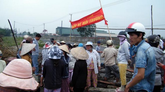 Chiều 30-9, người dân xã Điện Nam Đông (huyện Điện Bàn, Quảng Nam) chặn đường phản ứng nhà máy thép của Công ty TNHH Việt Pháp gây ô nhiễm - Ảnh: Trường Trung