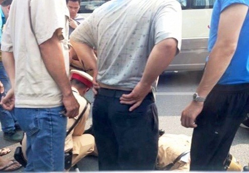 Ngay sau khi xảy ra sự việc, chiến sĩ CSGT đã được sơ cứu và đưa đến bệnh viện trong tình trạng bị choáng và xây xát chân tay.