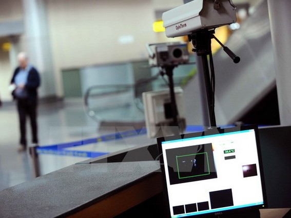 Hệ thống máy kiểm tra thân nhiệt từ xa bằng tia hồng ngoại được lắp đặt tại sân bay quốc tế Nội Bài. (Ảnh: Minh Đức/TTXVN)