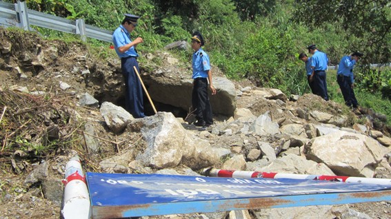 Các biển báo cấm đào bới trong ranh giới đất dành cho đường bộ trên quốc lộ cũng bị các đối tượng săn tìm gỗ sưa dỡ ngã. Tại hiện trường, hàng chục người mang đồ nghề đào tìm gỗ sưa bỏ chạy ra khỏi khu vực đèo Viôlắc khi thấy lực lượng thanh tra Sở GTVT Quảng Ngãi.