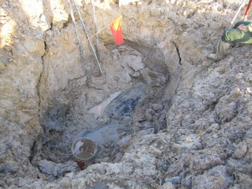 Theo đó vào ngày 21/11, trong lúc ra phá bom mìn còn sót lại tại cánh đồng Phong Hảo, xã Hưng Hòa, đơn vị này phát hiện một vật nổ ở độ sâu 2 mét. Sau khi được phép của cấp trên, lực lượng làm nhiệm vụ đã tiến hành xử lý, khai quật. Khi đào xuống ở độ sâu gần 2m, đội thi công đã phát hiện ra một vật nghi là đầu tên lửa dài hơn 2m, đường kính 0,8m; có trọng lượng gần 1 tấn đang nằm ngang.