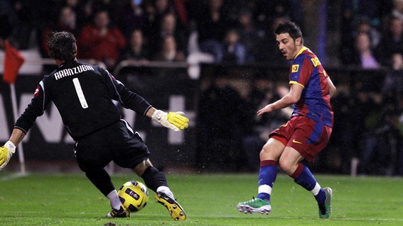Villa ghi bàn vào lưới Deportivo ở mùa 2010/11 - Ảnh Barcelona