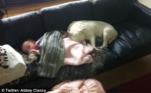 Tấm hình gây tranh cãi của Abbey Crouch đăng trên Twitter khi để con gái ngủ với chó