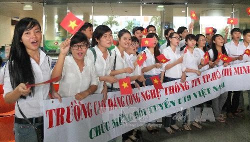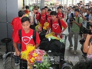 Người hâm mộ đón các cầu thủ U19 thi đấu thành công tại vòng loại giải châu Á.