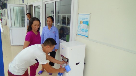 Lấy nước xong, chị Xuân quê ở Cẩm Xuyên Hà Tĩnh cho biết “ Tôi ra đây nuôi chồng bị ung thư đại tràng cả tháng rồi. Vì bệnh tình anh ấy nặng phải mổ nên tôi phải ở đây cả tháng cùng anh ấy. Nếu không có cây nước nóng lạnh này để chúng tôi uống và phục vụ pha sữa cho chồng tôi hàng ngày, có lẽ cũng sẽ rất vất vả. Vì trước đây tôi phải đi bộ ra ngoài đường lớn để mua, có ngày dùng đến 2 phích nước cũng tốn kém lắm. Vậy nên với chúng tôi ở đây, nước quý như vàng”.