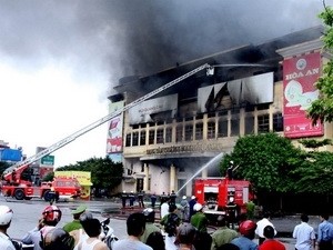 Hỏa hoạn ở trung tâm thương mại Hải Dương. (Ảnh: Mạnh Tú/Vietnam+)