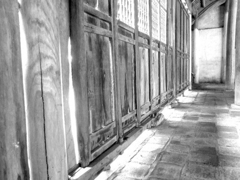 Hệ thống cửa chính của đền bị cong vênh, nứt nẻ toang hoác.